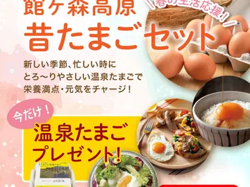 温泉たまごプレゼント!今だけ昔たまごセットをご購入の方に温泉たまごをプレゼントいたします。