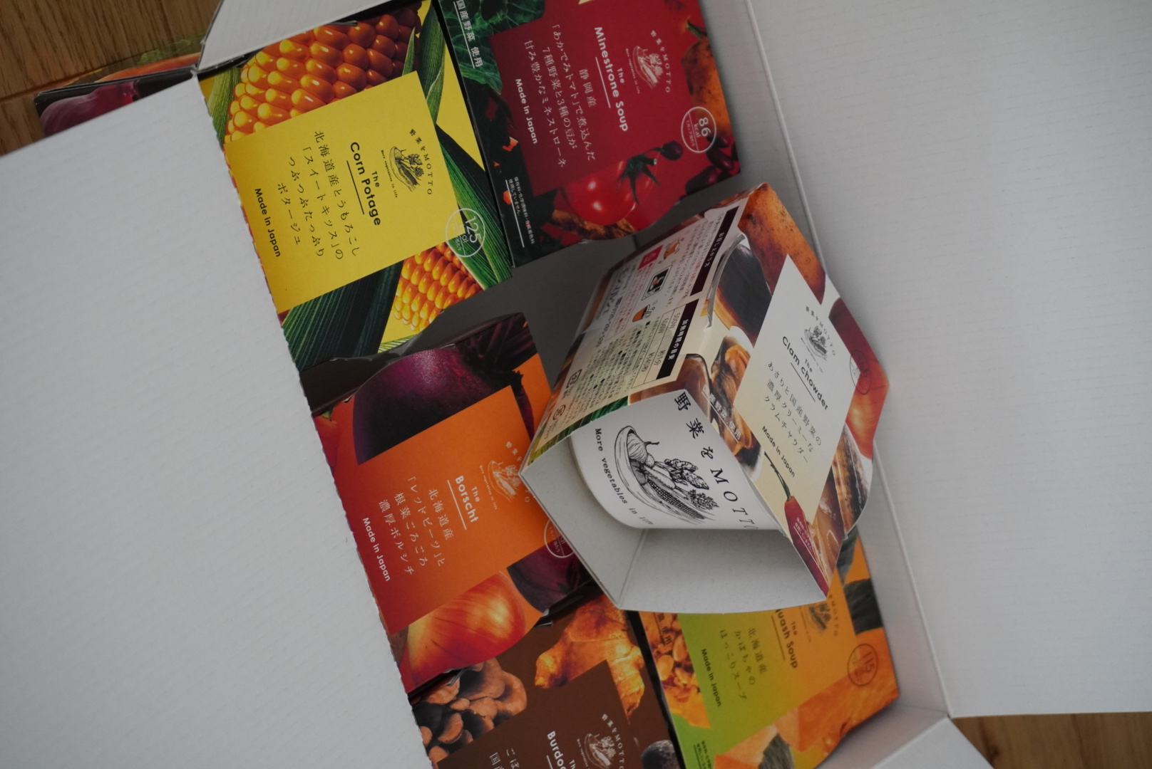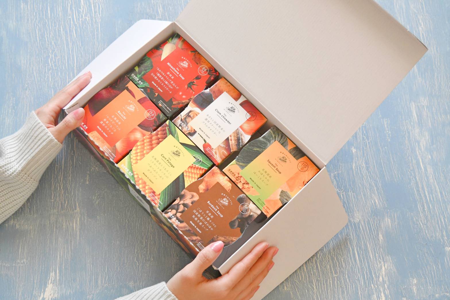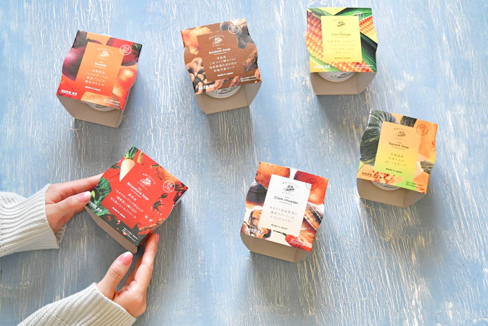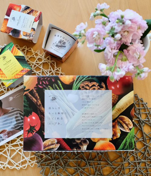 レンジでたった1分温めるだけで、国産野菜がたっぷりのスープが楽しめます♪どのスープも野菜たっぷりでとてもおいしいんです(๑´ڡ`๑)1分でできるとは思えない本格的なお味でした❣️常温保存OKなので、仕事場に持っていく時にも便利ですね☺️それにパッケージもかわいいのでギフトにもいいかも。