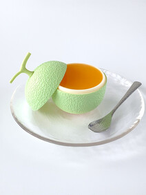 赤肉のメロンピューレを使用している事から、の色をしていて、ほんのりオレンジ色で高級メロンそのまま食べているような味わいです!