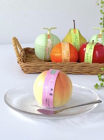 まるで本物の果実のような味わい、香り、みずみずしさが楽しめる「フルーツゼリー」です。長期保存可能なゼリーには珍しく、果汁やフルーツピューレを全体の30%も使用。果肉っぽい舌ざわり、寒天系プルンとした感じなど、フルーツごとに食感を変化させています。北海道産の芳醇な赤肉ピューレを使用し、上品に仕上げた「北海道メロンゼリー」、すっきりとした爽やかな甘みと、なしのような食感が特長の「ラ・フランスゼリー」、角切りの国産白桃がゴロゴロ入った「白桃」など計6種。それぞれの果実を模った容器に入っているので、見た目も華やか。母の日・父の日・お中元・お供えなど幅広く使用できます。