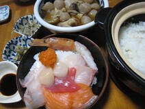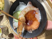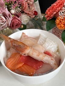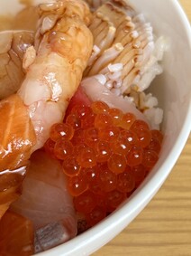 流水解凍後ご飯の上にのせるだけのお手軽な海鮮丼