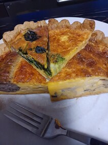 キッシュ専門店の「キッシュセット」です。ベース部分には、5種類のハーブと、なると金時や鳴門わかめを餌に育つ鶏の卵を使用。卵臭くなく、スッキリとした味わいに仕上がっています。パイ生地は、国産小麦粉を2種ブレンドすることで、サクサクの軽さを追求しています。しっかりとしたベーコンの旨味を感じる「国産ほうれん草と国産自家製ベーコン」、とろけるようなカマンベールチーズとふんわりとしたサーモンが並ぶ「カマンベールとサーモン」、しっとりジューシーなソーセージに、淡路島で育った甘みのある玉ねぎを合わせた「ハーブソーセージと淡路島玉ねぎ」など6種から好みの4種を選べる商品。異なる味わいのセットなので食べ比べも楽しめます。