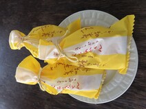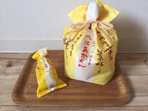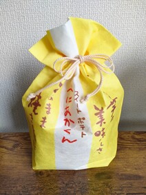 包装そっくりの大きなBIG巾着袋の中に「べにあかくん」を詰めました!可愛くて大人気です。