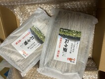 島根県大田市三瓶産のそば粉を使用した「干そば」です。「三瓶そば」とは、三瓶、山ろく標高500mにある大田市三瓶町から山口町で、古くから栽培されている三瓶在来種を使ったそばのことです。香りもよく風味の強く、のどごしのよい食感が特長です。乾麺で2パック(4人前)で届くため、割子、ざる、かけそばなどで楽しめます。