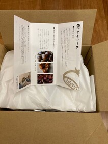 総重量650gのうち400gが栗という「栗のテリーヌ」です。「国産の栗、ヨーロッパ種の栗、アンデス栗」計3種類の栗を使うことで、味わいが単調にならず、個性豊かな味わいを楽しめます。焼菓子とも相性がよい国産の発酵バターや上品な甘さの讃岐和三盆糖を使用するなど、生地の素材にもこだわり、昔ながらの製法で作ってます。ずっしりと重量感があり、上品な味わいを堪能できます。栗本来の風味を味わえるよう、栗の糖度を控えめに仕立てています。印象的なパッケージに入ってとどく、上品なスイーツです。