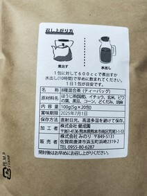 1包に対して600ccで煮出すか水出し(10時間)でお早めに飲まれてください。