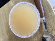 冷蔵したものは、よくあるゼリーのぷるんとした感じではなく、すりおろした梨をジュレにして固めたって感じでした。しかも、いい意味で梨を食べた時に口の中に残るようなザラつきあってゼリーなのにジューシーな梨を食べているような感覚になりました。