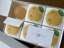 岐阜県産の梨を使用した「梨ゼリー」です。梨は、SDGsの取り組みとして規格外品を使用しています。味は変わらず美味しいのに、見た目が悪いだけで廃棄されてしまうものをゼリーにしています。まるで梨をそのまま食べているような味わいで、冷蔵庫で冷やすことでみずみずしさがより引き立ちます。つるんとした食感も魅力ですが、冷凍庫で凍らせてシャーベット状にするとシャリシャリとした食感も楽しめます。包装紙で包まれ、化粧箱に入って届くので贈り物にもおすすめです。