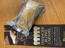 見た目もとてもインパクトがあります。割ってみると冬なのでとろーりとはなりませんでしたが、濃厚なキャラメルがよくわかります。ブランドチョコレートと相性の良い飲み物がミルクの入ったドリンクとのことで、ノンシュガーのカフェオレと合わせてみたら、最高にマッチしました。とてもしっとりしていて最高のフィナンシェです。