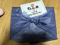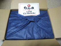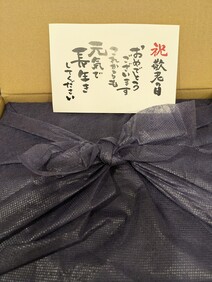 早速、梱包を開くと風呂敷に包まれた商品に敬老の日のメッセージカードが目に入ってきました。