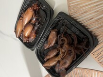 時間を掛けてゆっくり柔らかく甘辛く味付けされているだけあって、柔らかくて丸ごと一口で食べてしまえるのですが、もったいなくてゆっくり味わっていただきました。なかに子持ちのいかがありラッキーでした。全てにある訳ではないようです。