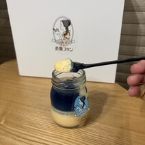 デニムブルーは見た目のインパクトが抜群で、ラムネ風味のジュレが爽やか!なめらかプリンの濃厚さとジュレのすっきり感が意外にもよく合って、夏にぴったりの一品でした。
