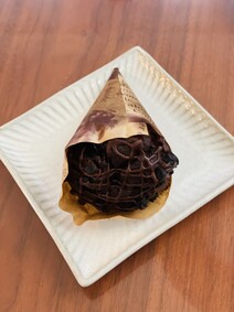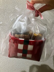 クレープのようにラッピングされた「マフィン」です。片手で食べやすく、しっとりとした食感が特徴で、優しい甘さが幅広い人に好まれます。しっとりとしたココア生地にチョコレートがたっぷり入った「チョコレートチョコレート」、ふわふわのプレーン生地にピーナッツキャラメリゼを混ぜ込んだ「キャラメルナッツ」など4種。異なる味わいをセットで楽しめるので、食べ比べにもぴったりです。赤いかごに花束のように詰められて届くため、贈り物にもおすすめです。