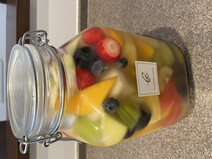 これは何だろう?これは?みんなでワイワイとクイズのように楽しみながら、本日のポンチッチDreamカードが同封されているので 確かめながら取り分けしました 主役級20種類のフルーツたちがひとつに集まって Dream瓶に夢のコラボです 取り分けると更に個々のフルーツの香りを感じることができ、色を楽しみながら、一つ一つ新鮮なフルーツを味わうことができます 一つのフルーツを口にする度に感動の嵐です みんなの幸せな顔をみて更に美味しさを増してくれます 多種のフルーツと優しいシロップがお口の中も心も更に満たしてくれます