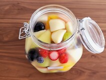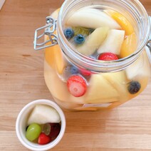 特製シロップに漬けた新鮮なフルーツ20種類が詰まった「フルーツポンチ」です。添加物を使用せず、新鮮果物、砂糖、レモン汁だけで作っています。その時の旬の果物が入っているので、季節によってラインアップが変わり、リピートしたくなる商品。ひとつひとつ丁寧に手作業でカットされた、季節の果物は瑞々しく、シロップも甘すぎないので、果物そのものの味わいを楽しめます。カラフルで華やか、香り豊かな商品なので、パーティーシーンを盛り上げますイタリア製のジャーに入って届くので、自宅用だけでなくギフトにもおすすめです。