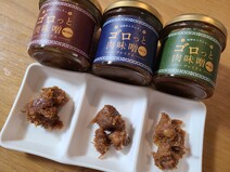 沖縄県産の豚肉、味噌、黒糖など沖縄素材にこだわった「肉味噌」です。ゴロっとした肉が入っているので食べ応え抜群です。沖縄県産豚肉、みそ、純黒糖をベースにしています。比較的甘口でベースの味をより感じられる「プレーン」、島唐辛子の種も含めて丸ごと使用しているので、後から来るピリッとした辛みと香りでごはんが進む「島とうがらし」、やんばる(国頭村)で栽培時農薬不使用の有機栽培された島らっきょうを使い、サッパリとした味わいに仕上げた「島らっきょう」の3種。異なる味わいのセットなので食べ比べが楽しめます。専用ボックスに入って届くので、贈り物におすすめです。