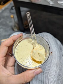 一番驚いたのは材料のシンプルさです。一切添加物が使われておらず、だからこその素朴で優しい甘さがありました。さらに素晴らしいのは食感で、プリンの表面の少し硬めの部分を通り過ぎた滑らかさが口の中でとろけました。下に行けば行くほど滑らかにやわらかになります。そして底にはカラメル。甘さの中のほろ苦さ、香ばしさが鼻に抜け、プリンの滑らかさと絡んだら至福のひとときです。