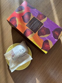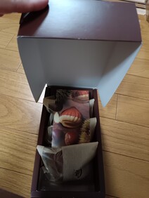 デリーモカラーのシックでシンプルなパッケージを開けた瞬間、ふっくらとした栗の形の焼き菓子が3つ、一つ一つ丁寧に個包装され、きれいに並んでいて、その愛らしさにまず心が和みました。