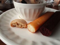 米粉フィナンシェ(しっとり):その名の通りまさにしっとりという食感で、比較的味も濃く感じました。アーモンドの風味も感じられてとても美味しかったです。スティックタイプで食べやすいのも魅力的です。