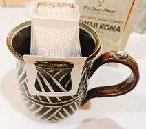 専用箱に入った5袋セットの「100%コナコーヒー」ドリップタイプです。ハワイで育った100%コナコーヒー豆を使用し、挽いた豆をそのままパックにしています。ドリップタイプなので、湯を注ぐだけで簡単に淹れられ、忙しい朝やアウトドアでのコーヒータイムにもピッタリです。長期保存可能で、常備しておけばいつでも美味しいコーヒーが楽しめます。スタイリッシュなパッケージなのでプチギフトにもおすすめです。