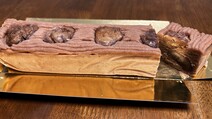 フランス産の栗を中心に5種類の栗を使用した、栗の香りと味を存分に楽しめる濃厚「栗のテリーヌ」です。テリーヌの中とトップには、日本ではあまり流通していないフランス産シャテーヌ(山栗)の渋皮煮を使用。シャテーヌはマロングラッセなどに使われる一般的なマロンと比べ独特の強い甘味が特長で、マロンとは異なる香りを堪能できます。上部にはモンブランをイメージしたマロンクリーム。モンブランと言えばラム酒を組み合わせることが多いですが、ラム酒を直接生地に混ぜると全体がラム酒の香りになってしまうため、ローストした栗パウダーでマジパンを作り香り付けをし、最下段に忍ばせることで、マジパンを食べた時にラム酒が香るようにしています。