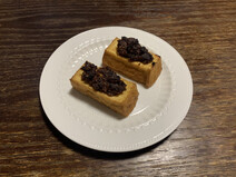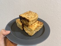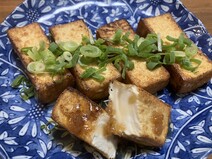 厚揚げ(木綿豆腐)は、カリッと焼いてめんつゆをかけていただきました。外はカリッ、中はふわっふわでめっちゃ美味しい、、!木綿と絹でも全然違いますね〜