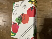 野菜柄の紙包装に、お歳暮シールが添付してお届けします。