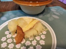 今度は温めてホカホカにしてみます。電子レンジで500W6分。ふたを開けると芋の香りがいっぱいに広がります。ひんやりの時とは全く違った印象。芋のほくほく感、チーズケーキはクリームチーズとカマンベールチーズの芳醇な香りが広がり、とろける食感に。どの層も温まることでより全体がなじみ、より一体感が生まれました。
