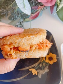 フライパン要らず!パッケージから商品を取り出し、内袋のまま電子レンジでチンしてすぐに簡単で美味しい焼き魚のライスバーガー。