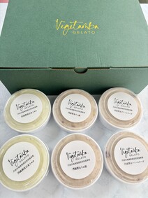 箱は2段になっていて上段にジェラート下段に保冷剤が入っています。細かい点でいえばこの保冷剤も贈答品として恥ずかしくない柄なのがありがたいです。