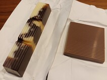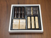 帝国ホテル2代目本館(通称「ライト館」)の外壁のスクラッチタイルを模した、ビターとマーブル2種類のスティック型チョコレートと、ビターとミルク2種類のプレート型チョコレートの詰め合わせです。スティックチョコレートは、ほどよい厚みの歯応えが特長で、プレートチョコレートは、滑らかな口溶けを楽しめます。自宅用にはもちろん、手土産や贈り物にもおすすめです。