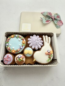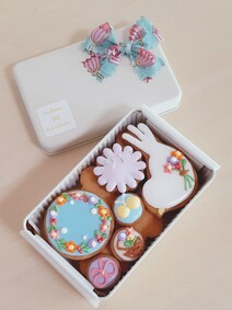 その下にはお花の形の素焼きクッキーがたくさんはいっています。普段ならこんなに可愛いアイシングクッキーは最後まで取っておくタイプなのですが、ここは感想を述べるために思い切って早速いただくことにします笑。