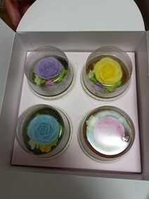 特にカップケーキの箱がリボンで可愛い所や、カップケーキの見た目が本物のお花のようで可愛く、一つ一つがこだわられて作られてるなと感じられました。