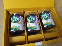 箱を開けてみると、ブルーベリーソースが3本入っておりました。