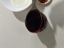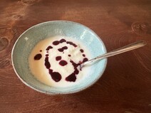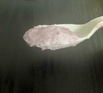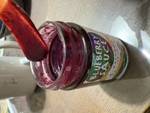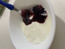 思った以上にサラサラしており、液体感が強い印象です。『ヨーグルトのためのブルーベリソース』というだけあって、色鮮やかな紫がヨーグルトによく溶け込みました。