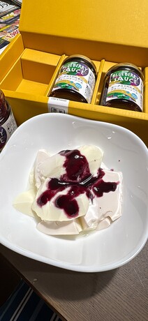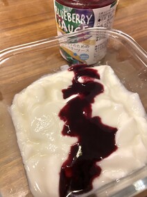 ブルーベリーソースは来てすぐに早速、頂きました。やはり濃厚なソースと合う!プレーンヨーグルトにぴったりですよね。