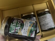 ヨーグルトのためのブルーベリーソース3本セット(箱付き)を、お試しさせていただきました。
