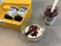 箱を開けると入っているのは瓶詰めされたブルーベリーソース。保存料や着色料は使用されていないということで安心して頂けそうです。早速、ヨーグルトにかけて味わってみることにしました。