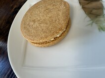 サクッとした食感の塩味のあるクッキー、口の中で溶ける優しい甘さのクリームがよく合います。ひとつで満足感があり、ティータイムにぴったりです。