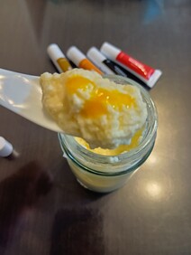 気づけば1時間ほど、さまざまなソースをかけながら、自分なりの味を探していて、プリンを「食べる」というより遊び感覚で楽しんでいる様子が印象的でした、