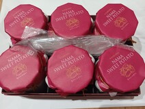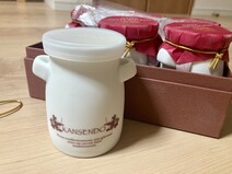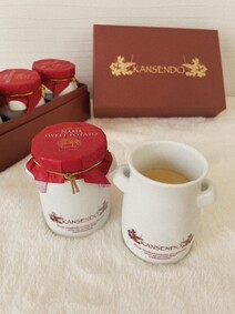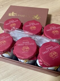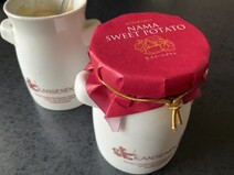 箱も高級感のあるワイン色の箱に金のロゴで素敵ですし、中を開けると、ミルク缶の形の陶器の入れ物にスイートポテトが入っていて、色々なところに素敵なこだわりを感じました。