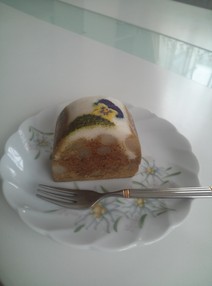 そして、箱から出すと、とびきりオシャレなお菓子の登場!上に飾ったお花にはうっとりでした。