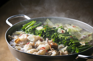 国産牛にこだわり、丁寧に下処理を行った新鮮な牛もつ(300g)と鹿児島産の醤油、味噌、隠し味に焼酎を使った薩摩の特製醤油スープ(1,200cc)のもつ鍋セット(2~3人前)。余分な脂を取り除いたぷりぷりの国産牛もつを、ご家庭で簡単に召し上がれます。