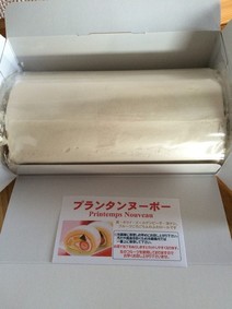 真っ赤なインパクトのある箱に入れられたロールケーキ。