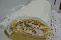 食べてみると、普段食べるロールケーキと違い、周りにもたっぷりクリームが塗ってあるので、しつこく感じるかと思いきや、甘すぎず、フルーツとも相性があって、いくらでも食べられそうな感じでした。
