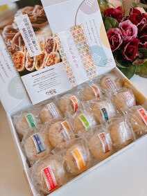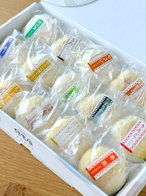 通常の半分のサイズの、信州・長野の郷土食「おやき」です。定番の9種のおやきの具材に、6種類を加えた15種類の味が楽しめます。皮は「焼き」タイプなので、柔らかいだけでなく、焼いた食感も感じられます。定番の「野沢菜、なす」等だけでなく、おやきとしては珍しい限定6種類「トマト、チーズ、カレー、春雨、ホワイトチョコ、りんご」など、甘いものから辛い物までバリエーション豊富なセットです。箱入りなので贈り物にもおすすめです。