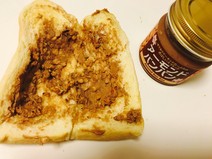 トーストに塗ったものと、餃子の皮とバニラアイス、アーモンドバンバンをミルフィーユにしたものを作ってみました(^ ^)