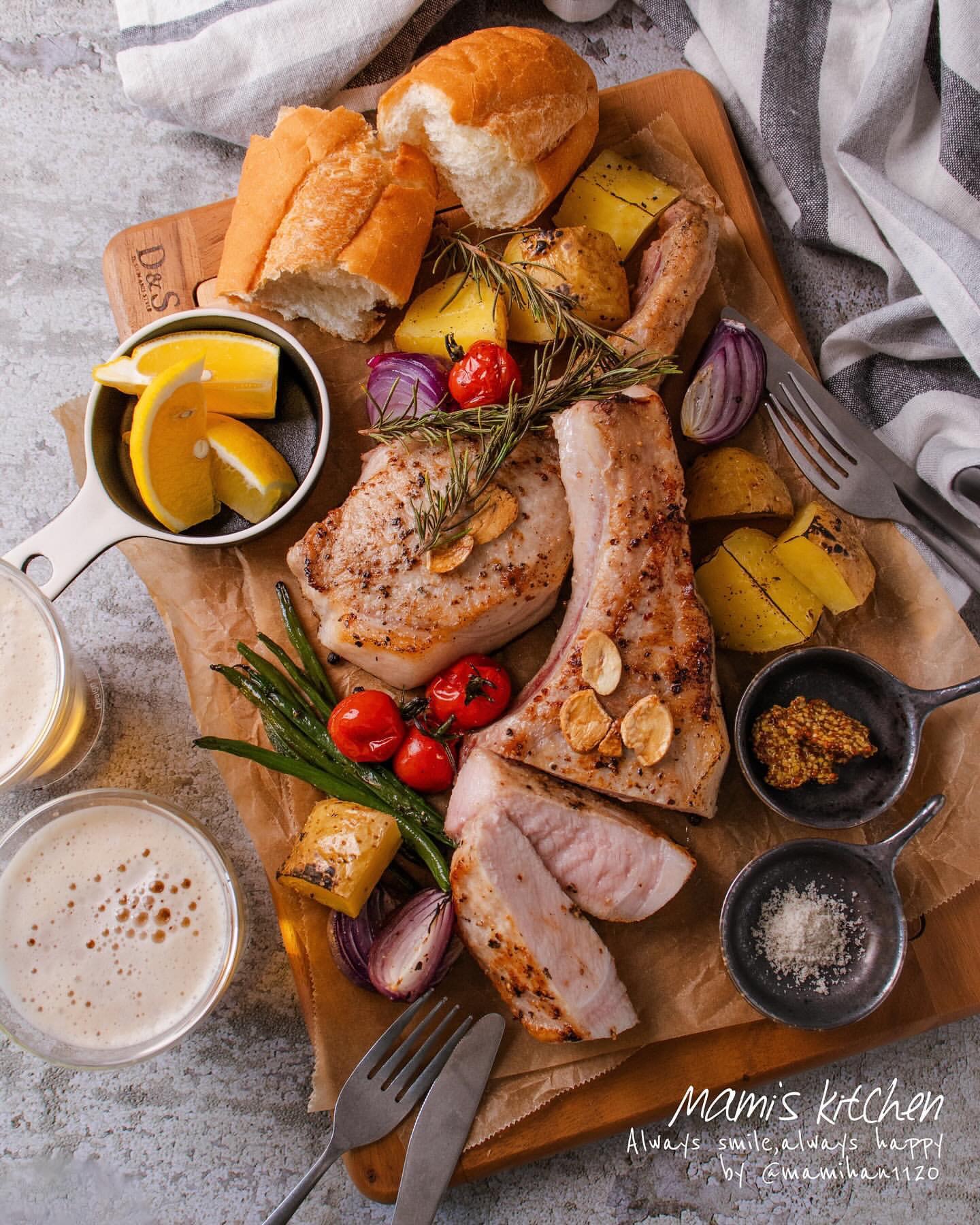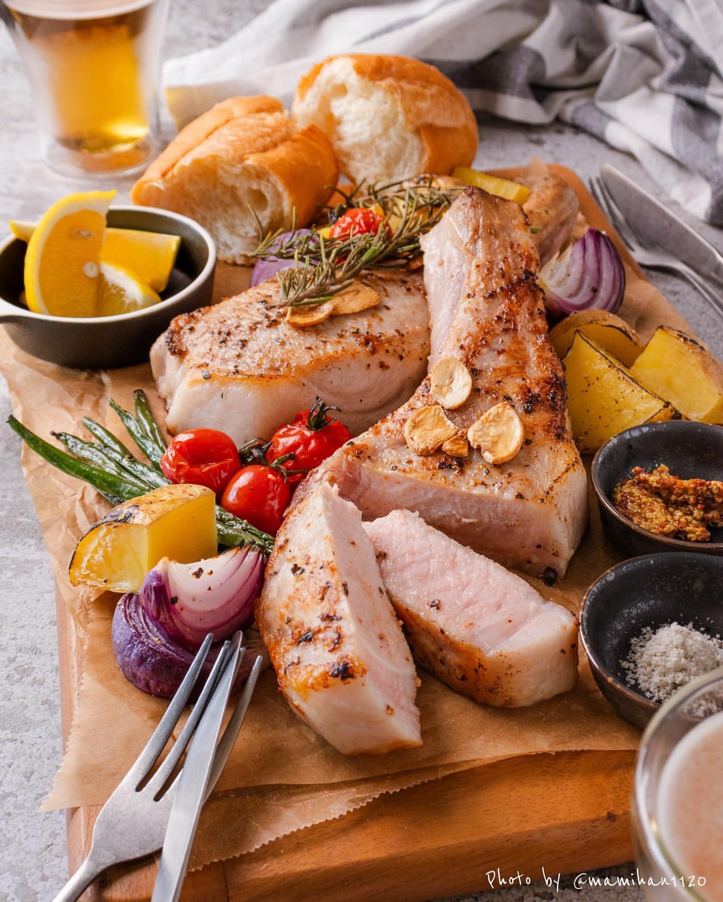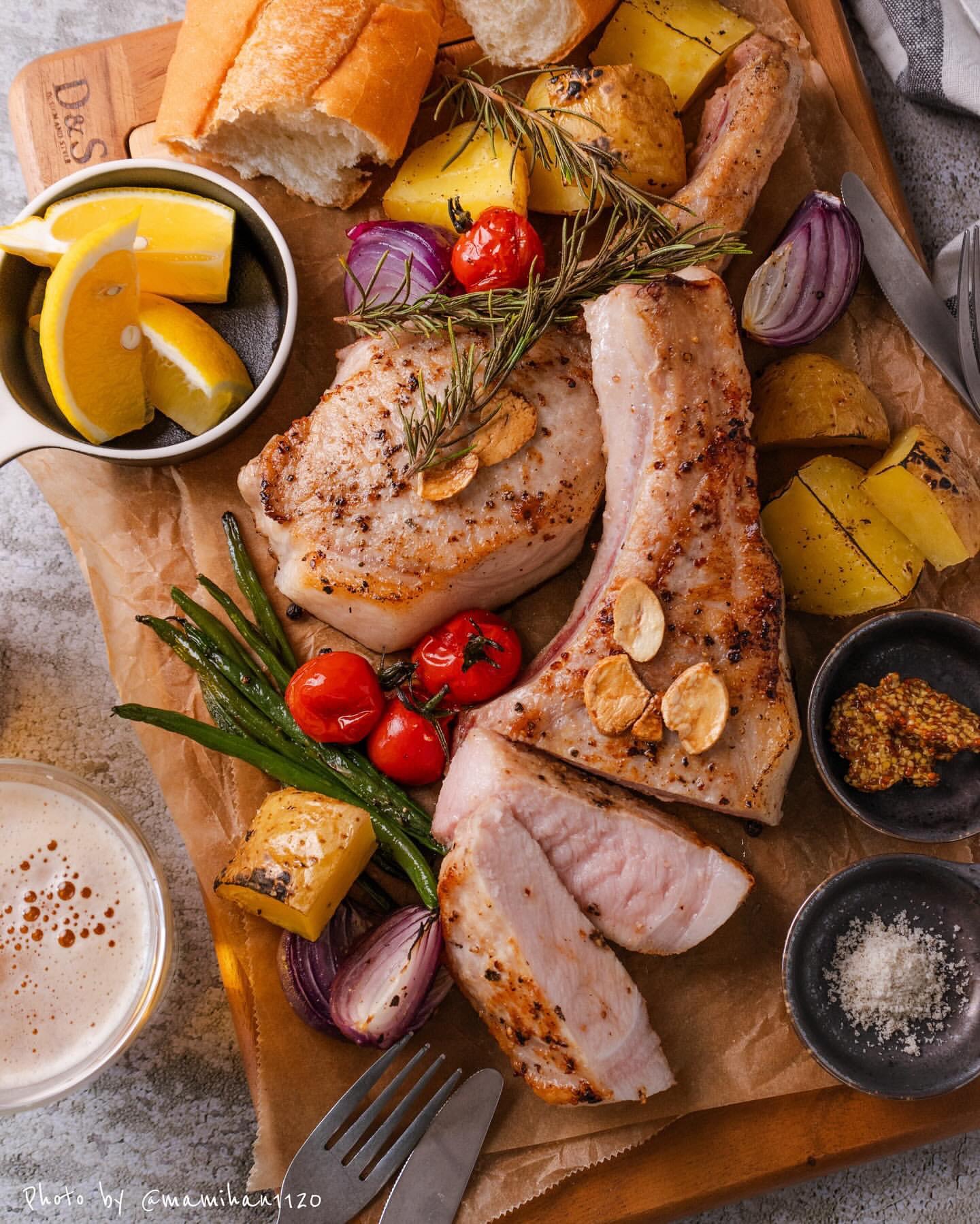 ■ Ark館ヶ森高原豚 骨付きロース肉 ステーキ ロースト野菜添え