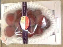 平成28年の初競りで、なんと110万円の価格がついた“ルビーロマン”は、石川県で長い歳月をかけて試行錯誤の上に作られた大粒の赤い「ブドウ」です。色の鮮やかさとピンポン球ほどもある粒の大きさが最大の特徴で、とても食べ応えがあります。また果汁が豊富で糖度も高いながら、爽やかな甘味で後味はさっぱり。一本の樹から3~4房だけが選ばれて栽培され、流通には厳しい審査基準があるため、希少価値が高く、宝石に最も近いブドウと言われています。