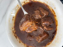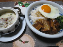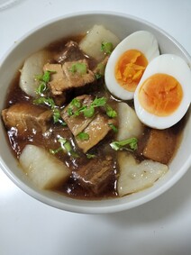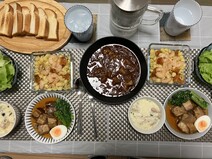 【和風豚バラ肉の角煮】お肉がホロホロのとろとろで他の3品が洋風なので家族の少ない人は別日に食べても良いかもしれません。我が家は別日に角煮丼として食べたのですがもうこの一品だけでご馳走です。